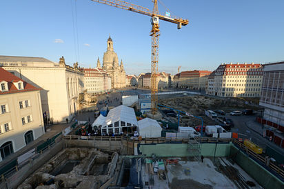Das Landesamt für Archäologie in Dresden führte zeitgleich mit der Genehmigungsplanung und vor dem Baubeginn archäologische Grabungen durch. Es wurde geprüft, ob historische Keller in die Rekonstruktion zu integrieren sind.